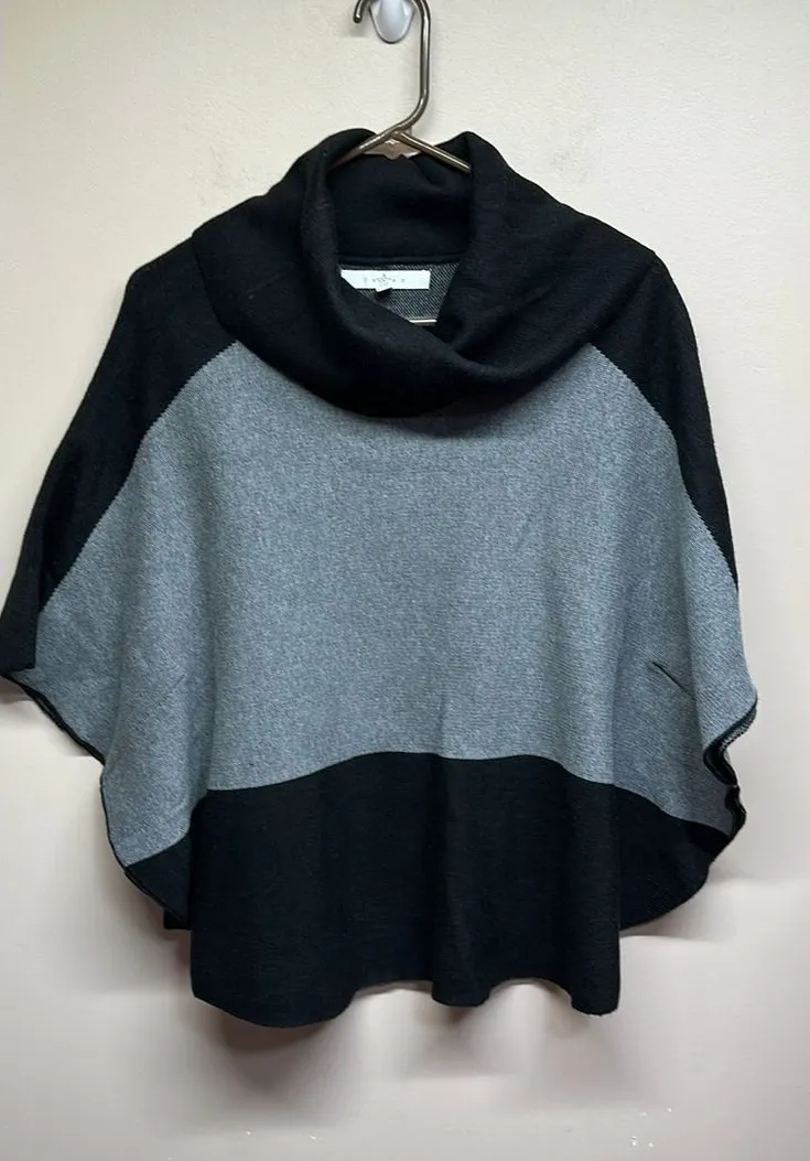 colorblock poncho sweater with a cozy cowl neck. The sophisticated blend of black and gray offers a... Show more
