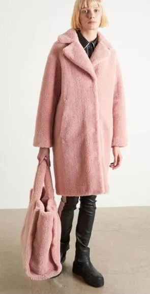 Stand Studio Camille Long Faux Fur Teddy Cocoon Coat Jacket Light Pink Women' size 32 / Extra Small... Show more