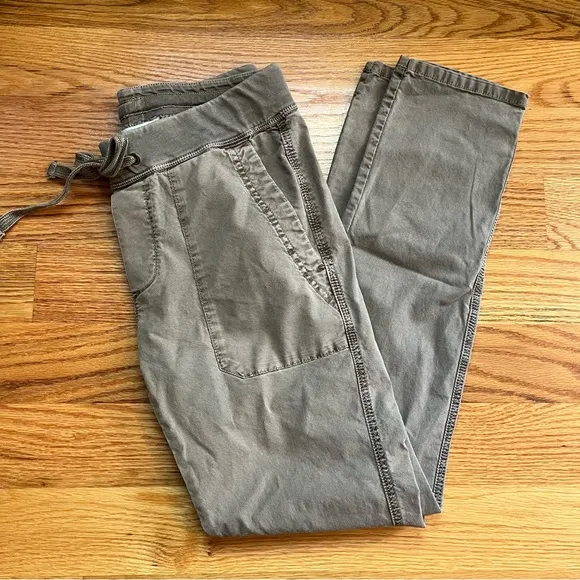 Standard James Perse stretch canvas surplus pants size small. In excellent preloved condition. Size 1 in James Perse sizing is equivalent to a size small. Pull on waistband and drawcord waist. Front slash pockets. Rolled and untacked leg cuff. Style number WGD1409. Color is a brownish-green (looks greener in photographs due to lighting). Measurements lying flat Waist 15” Rise 9” Inseam 29.5” Smoke free home. Check out my other listings. Bundle and save!