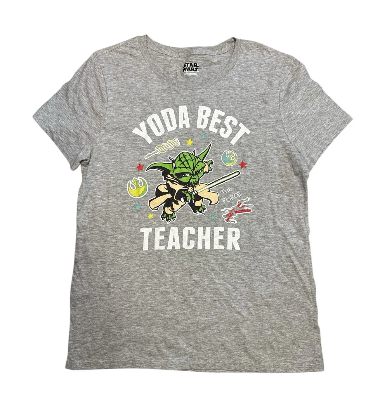 Channel the Force with this classic Star Wars Yoda t-shirt. This tee features a cool, distressed graphic of Master Yoda on a comfortable navy blue background. Made from a soft cotton blend, it has a flattering women's fit that's perfect for a day at the Disney parks or a casual movie marathon. Excellent pre-owned condition with a vibrant, intentional vintage-look print. Graphics are clean and crisp. Size: Medium (pit to pit 18" length 25.5") not exact Star Wars Geek Chic Casual Retro Fandom Streetwear Wise Iconic Fun Nerdy Classic Cinema Soft Lightweight Breathable Easy Care Yoda Jedi Master Disney Bound Sci-Fi Tee 1.11.26