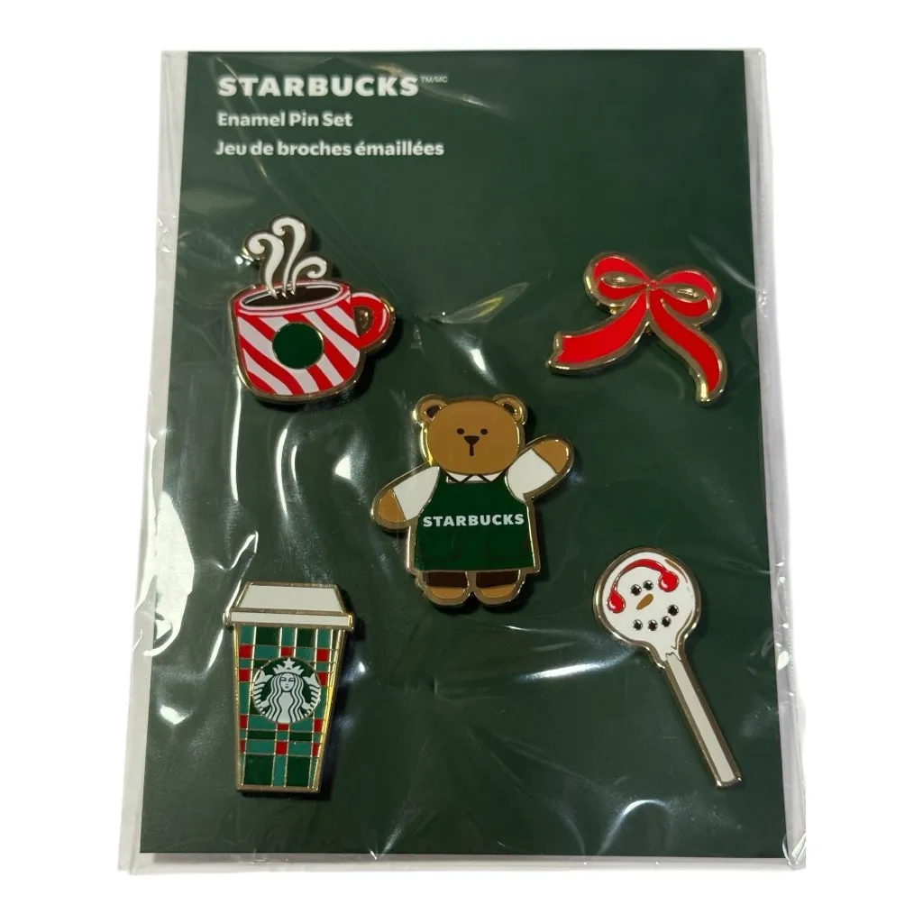Add festive charm to your collection with this Starbucks Holiday 5-Piece Enamel Pin Set, featuring a... Show more