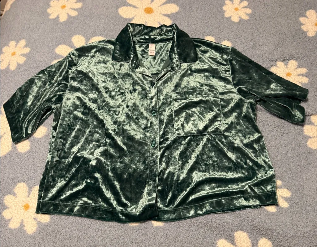 Stars Above Green Velvet Pajama Set - Top & Bottoms Size M - $25 - From Ashleigh