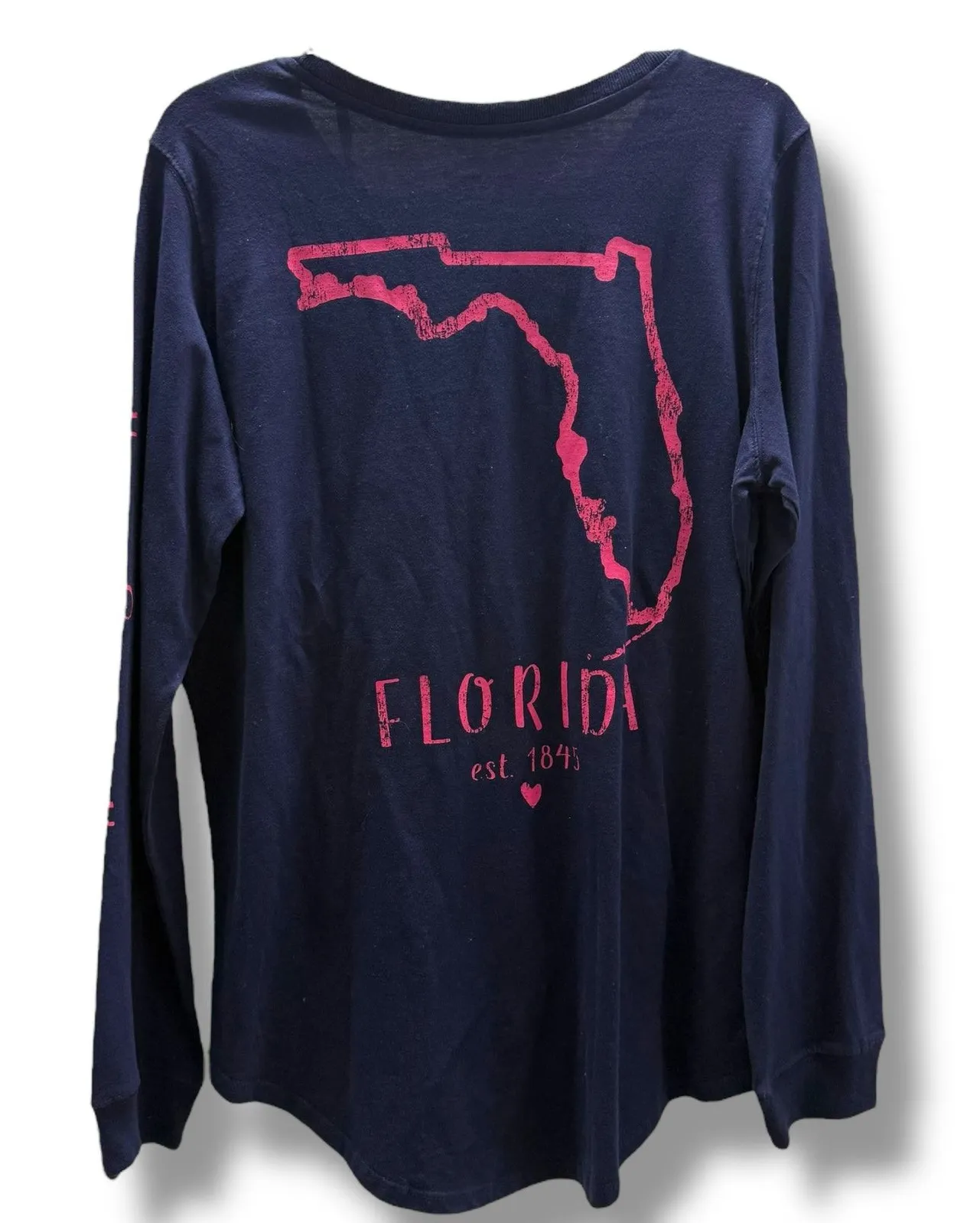 State of Mine Womens Long Sleeve Florida Est 1845 Navy Blue Pink Tee NEW GENERALLY SHIP SAME OR NEX... Show more