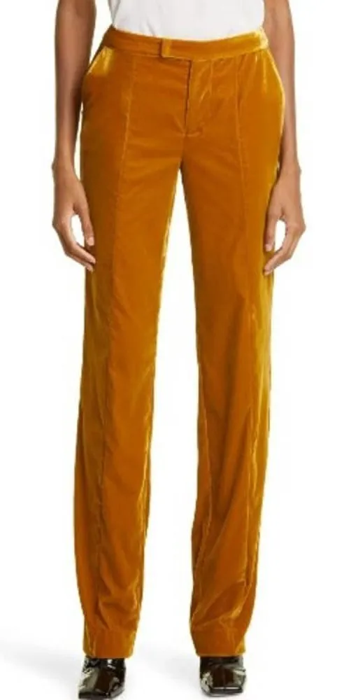 STAUD Tosca Straight Cut Velvet Pants in Ocher NWT Sz. 14 Retail $350 NEW WITH TAGS! Measurements Ta... Show more