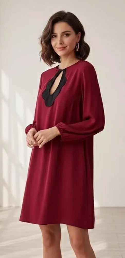 Features - Long Sleeve - Wine Red with black Accents - Sample pieces missing tag and care instruction Flat Lay Measurement: - Pit to pit: about 34in - Waist: about 28in - Length/ Shoulder to hem: about 37in Please note: We do our best to ensure that our photograph products are as true to colour and condition as possible, but variations may occur due to the nature of the products we sell. Sizes of items listed in descriptions are approximate and are measured as the overall width laying down flat.
