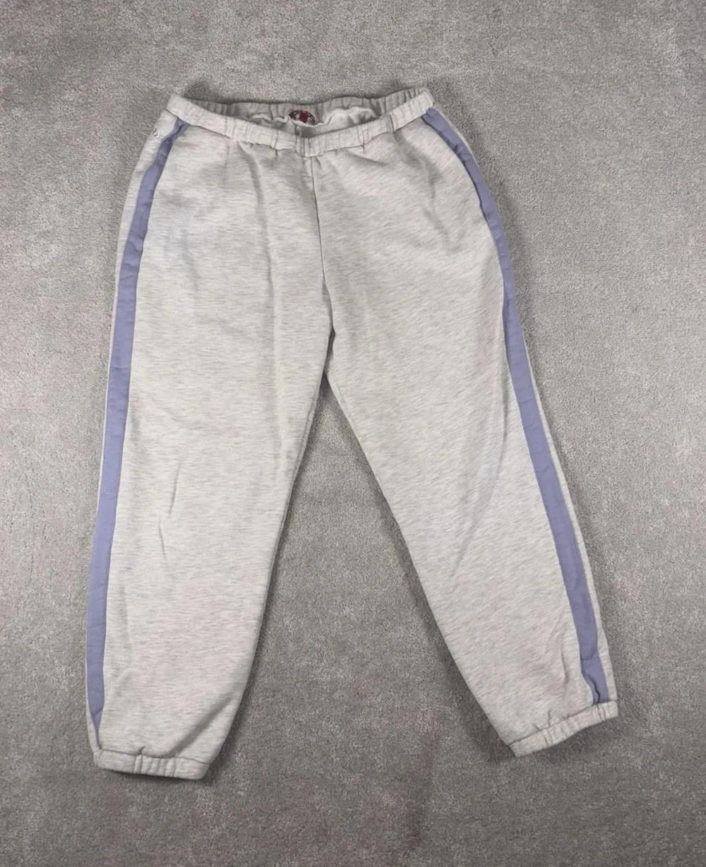 The Staud Women's Cambrie Colorblock Side Stripe Sweatpants in size L are a stylish and comfortable choice for various occasions such as activewear, casual outings, or even parties. Made from 100% cotton with a soft fleece fabric type, these sweatpants feature a pull-on closure, elastic waistband, and tapered leg style. The grey and purple colorblock pattern adds a unique touch, while the logo embroidery on the side provides a subtle brand detail. With features like elastic cuffs, two front side pockets, and a very soft and comfortable feel, these sweatpants are a versatile addition to any wardrobe. Hanger 419
