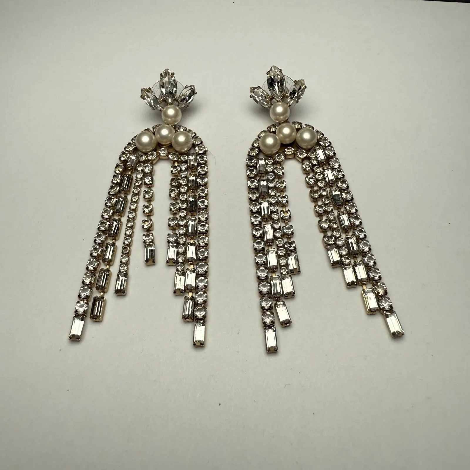 Stella & Dot Waterfall Chandelier Drop Pierced Earrings Rhinestone Faux Pearl Gold - $29 - From Charlsey