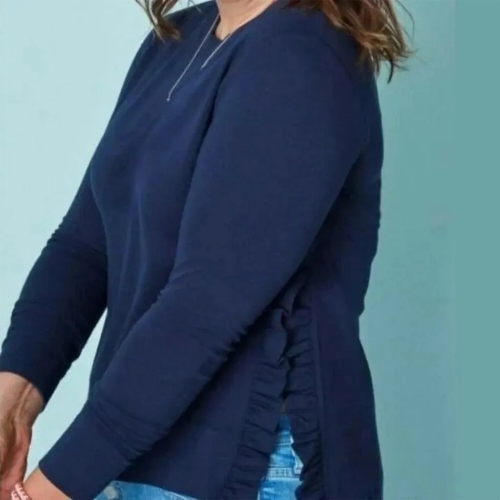 This Stella & Dot blouse in size XL features a solid blue color with a round neckline and long sleev... Show more