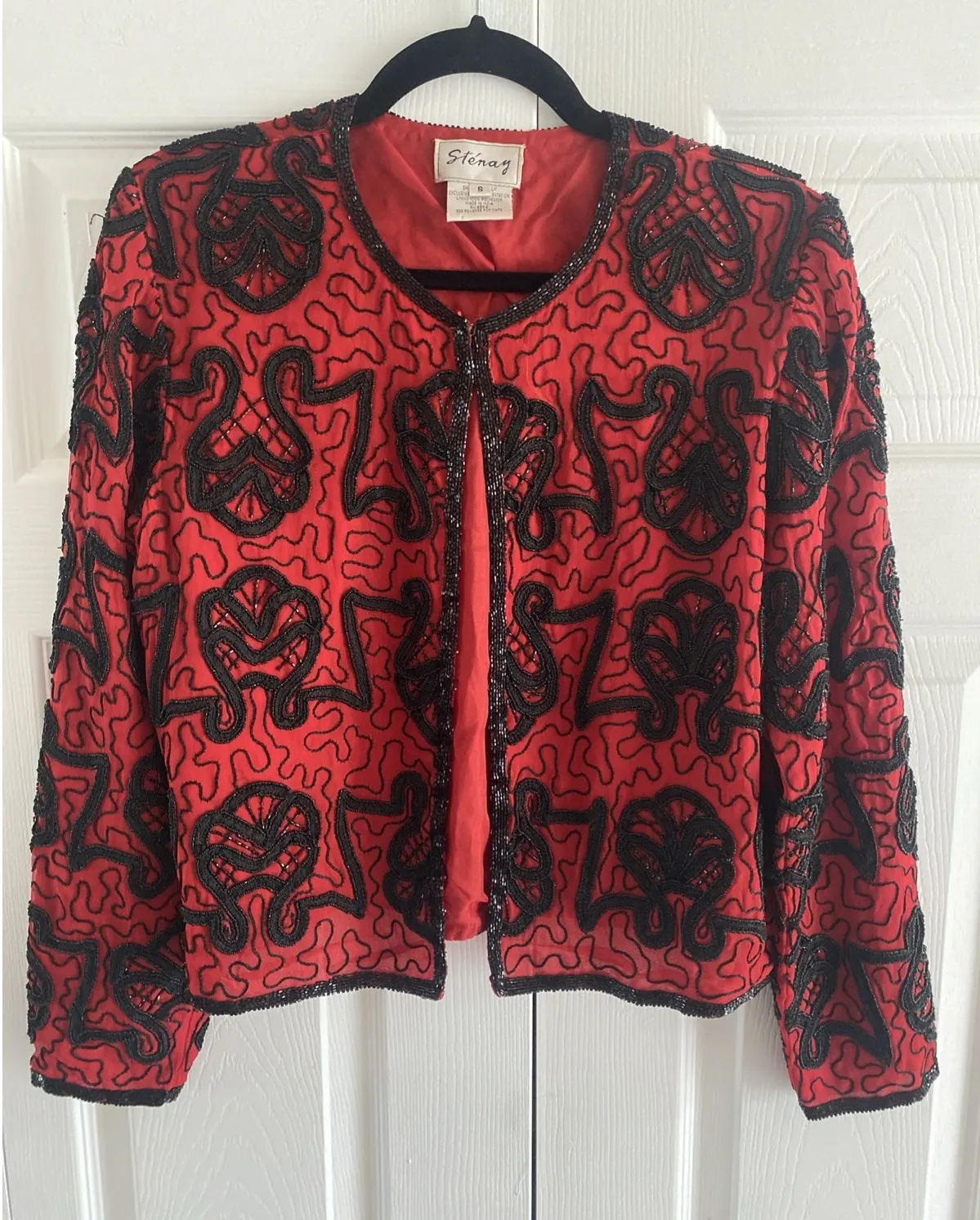 Stenay Womens Small Red Silk Black Beaded Bolero Jacket Holiday Event Glam - $73 - From Arielle