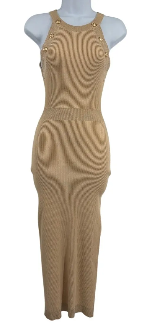 Steps New York Ribbed Knit Midi Dress Gold Button Detail Bodycon Tight fit, Halter neck with glitte... Show more