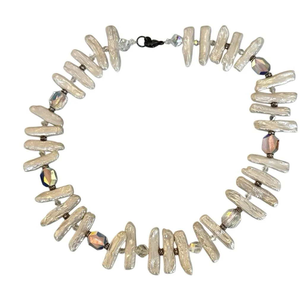 ⨠Gorgeous statement necklace featuring natural freshwater stick pearls paired with brilliant Swaro... Show more