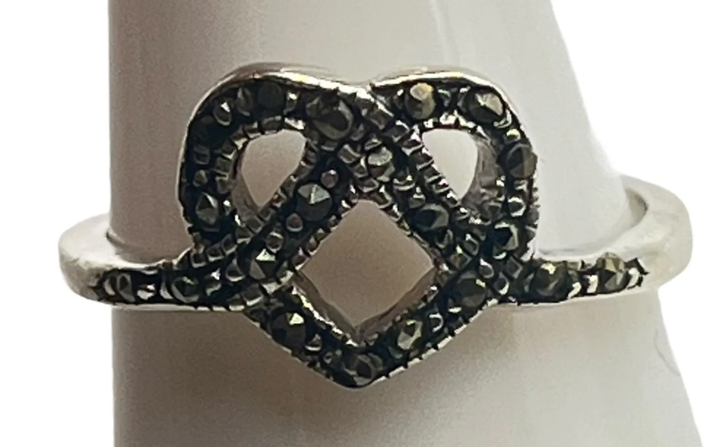 Sterling Silver Marcasite Heart Ring Sz 6.5 Love Knot Statement Band Jewelry Size 6.5 Preowned/gen... Show more