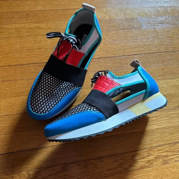 Super clutch sneakers by Steve Madden, great 80s style colorway and striking design. Worn once? Sani... Show more