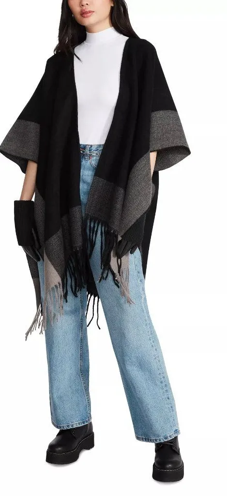 Stay warm and stylish while looking like a walking optical illusion in this chic poncho. It’s the pe... Show more