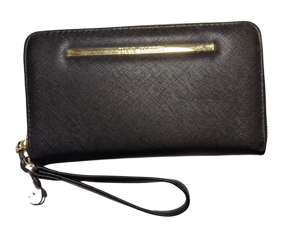 Chic black wallet with sleek gold detail. Ideal for stylish outings. NWT See photos. Peeling on the... Show more