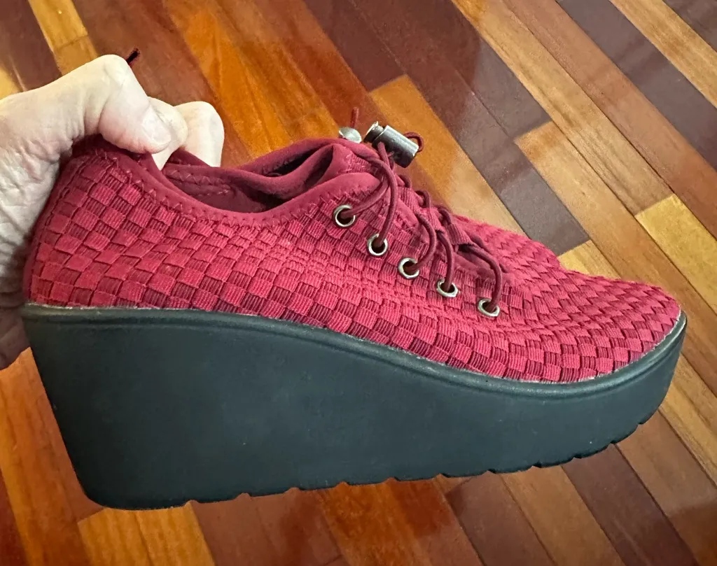 Steven by Steve Madden Comfort Wedge Shoes Red Woven Women’s Size 8 Toggle Lace Stretch super co... Show more