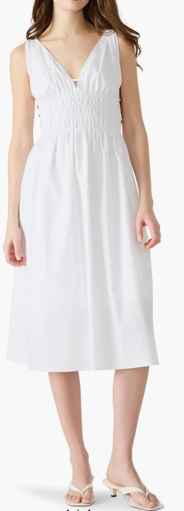 New without tags Wooden beads detail the side cutouts of a vacation-ready dress cut from cool cott... Show more