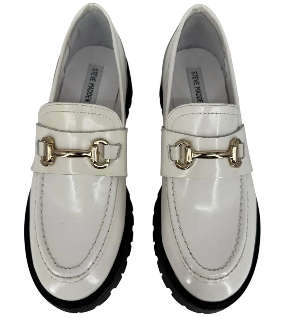 Steve Madden Lando White Leather Lug Sole Loafers Gold Horse bit Hardware. Size 9. No box. Style: L... Show more