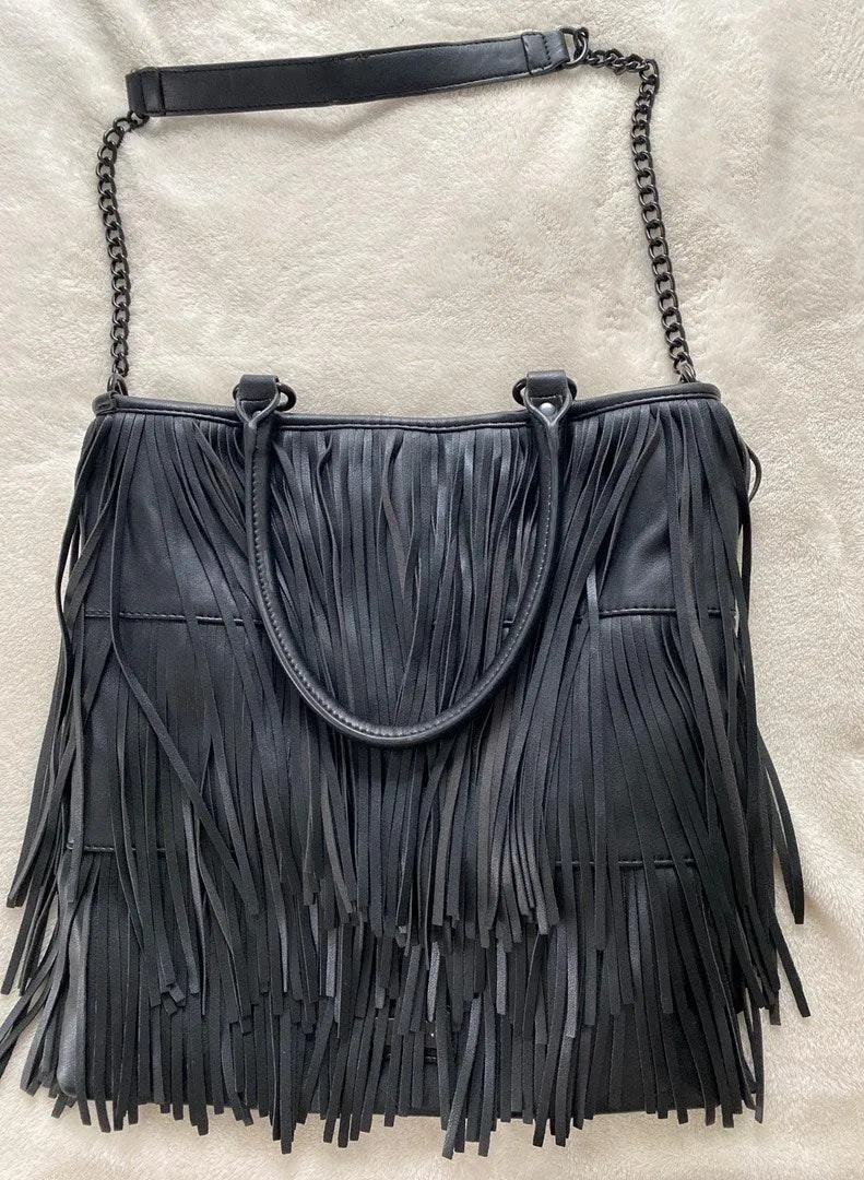 Steve Madden leather, fringe bag. Great condition, lightly worn. Lots of space for storage. Black &... Show more