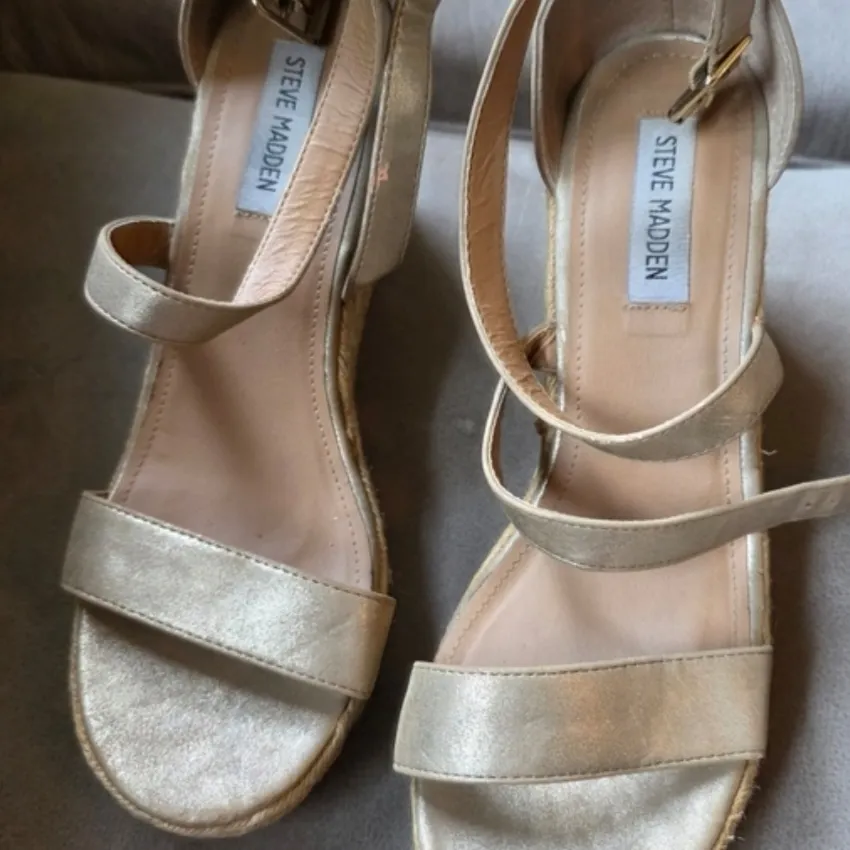 Chic metallic gold espadrilles by Steve Madden. Features stylish straps and comfortable wedge design... Show more