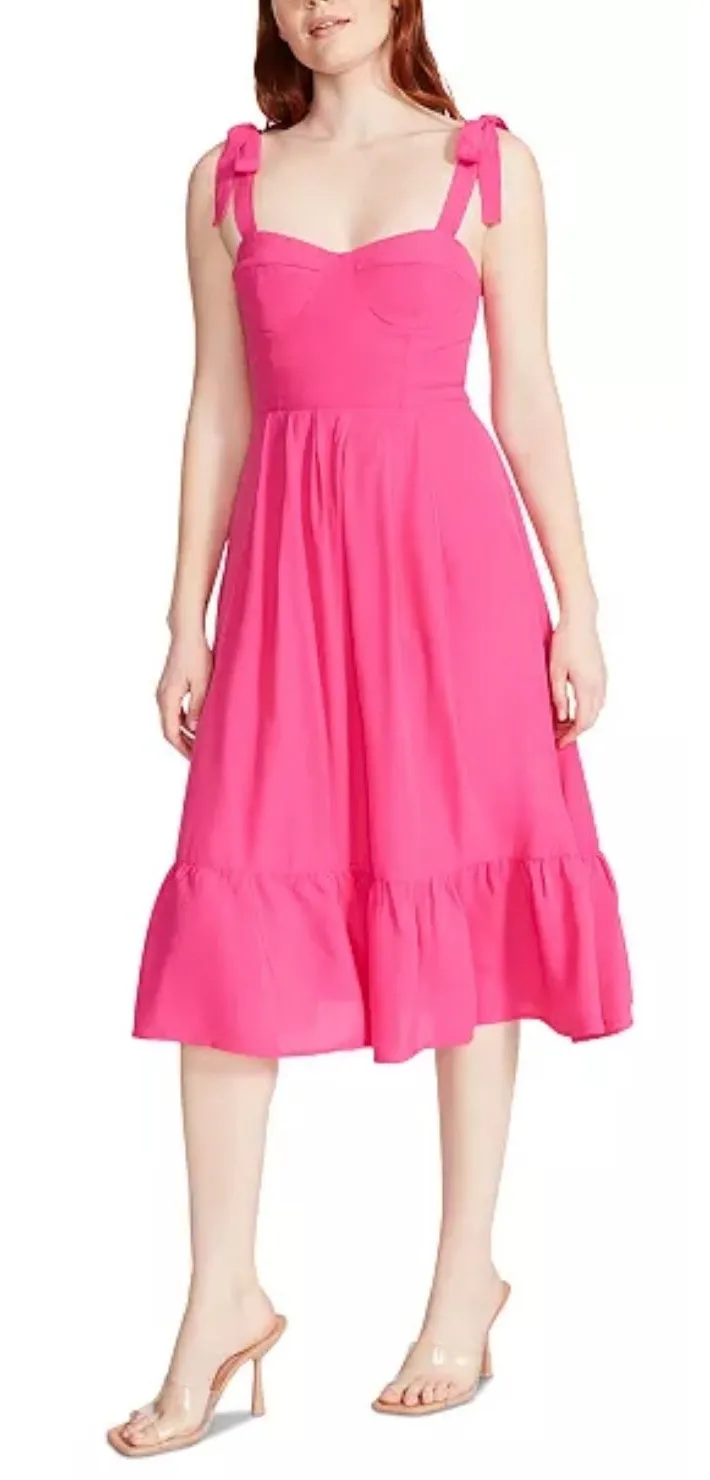 Steve Madden size 2 Midi Dress Sophia Rose Hot Pink Tie Shoulder Sundress New
