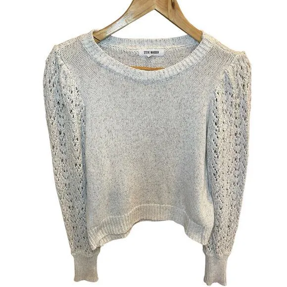 Steve Madden Oatmeal Cream Color Cable Knit Sweater with Crochet Style Sleeves, Women's size medium.... Show more