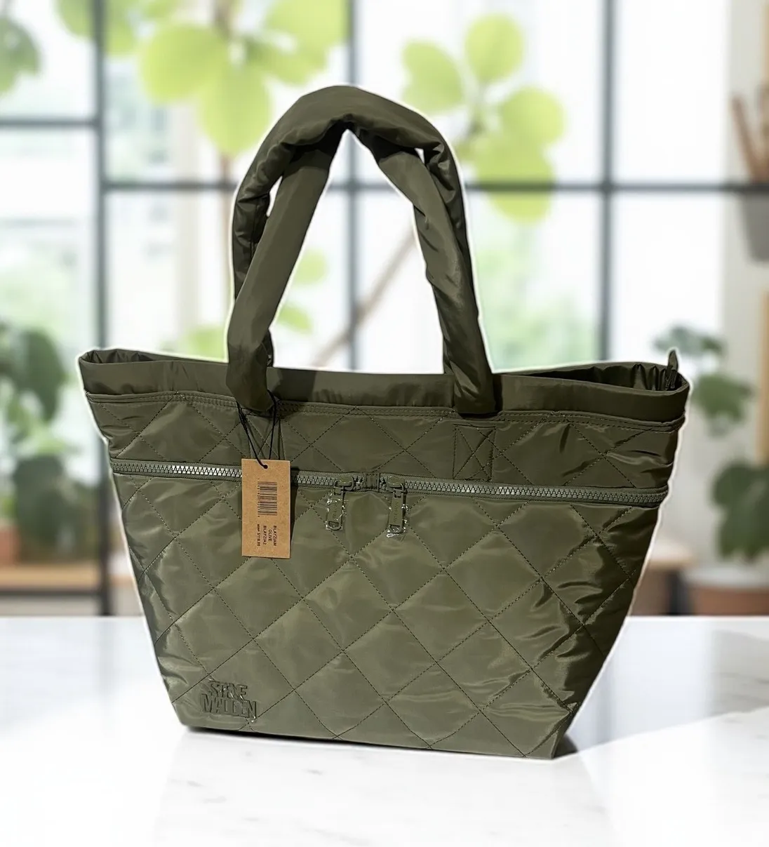 Steve Madden Olive Green Quilted Tote Bag Zip Pocket New with Tags Size: Large Exterior Material: N... Show more