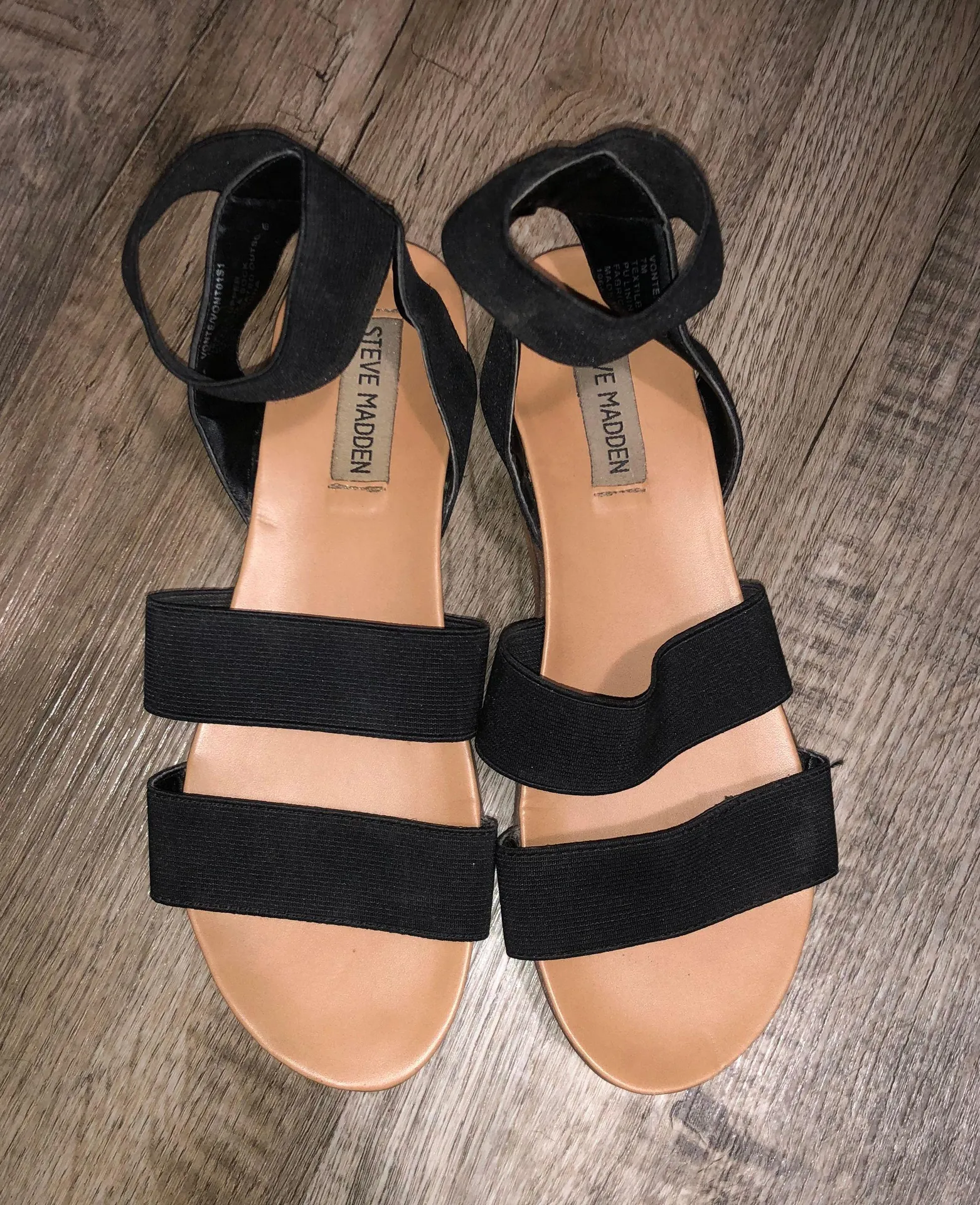Black Steve Madden platform sandal! So comfy. Stretchy straps and ankle strap