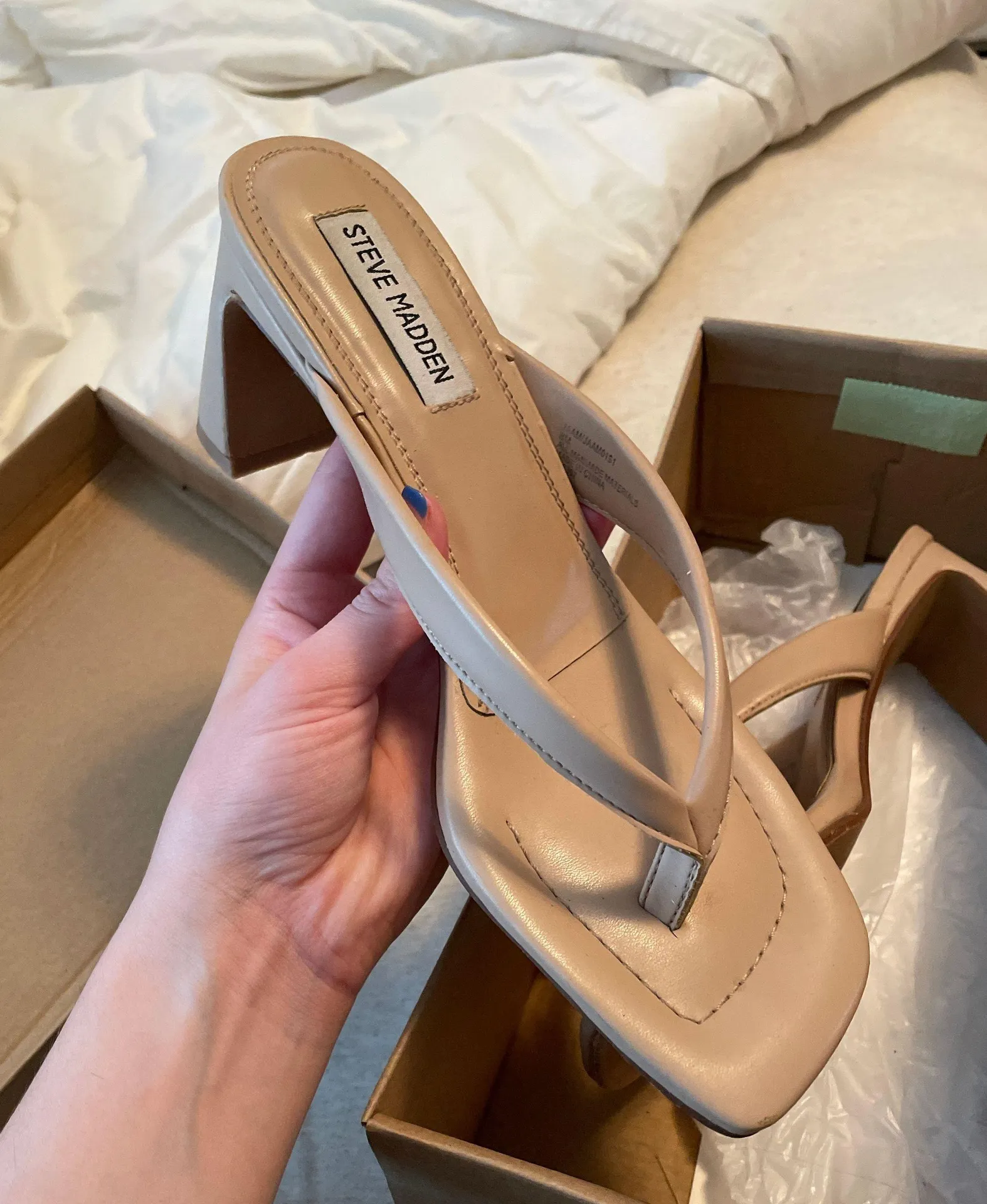 2 inch flip flop heels, square toe and nude color! Only worn once for a wedding I was in, and they’r... Show more