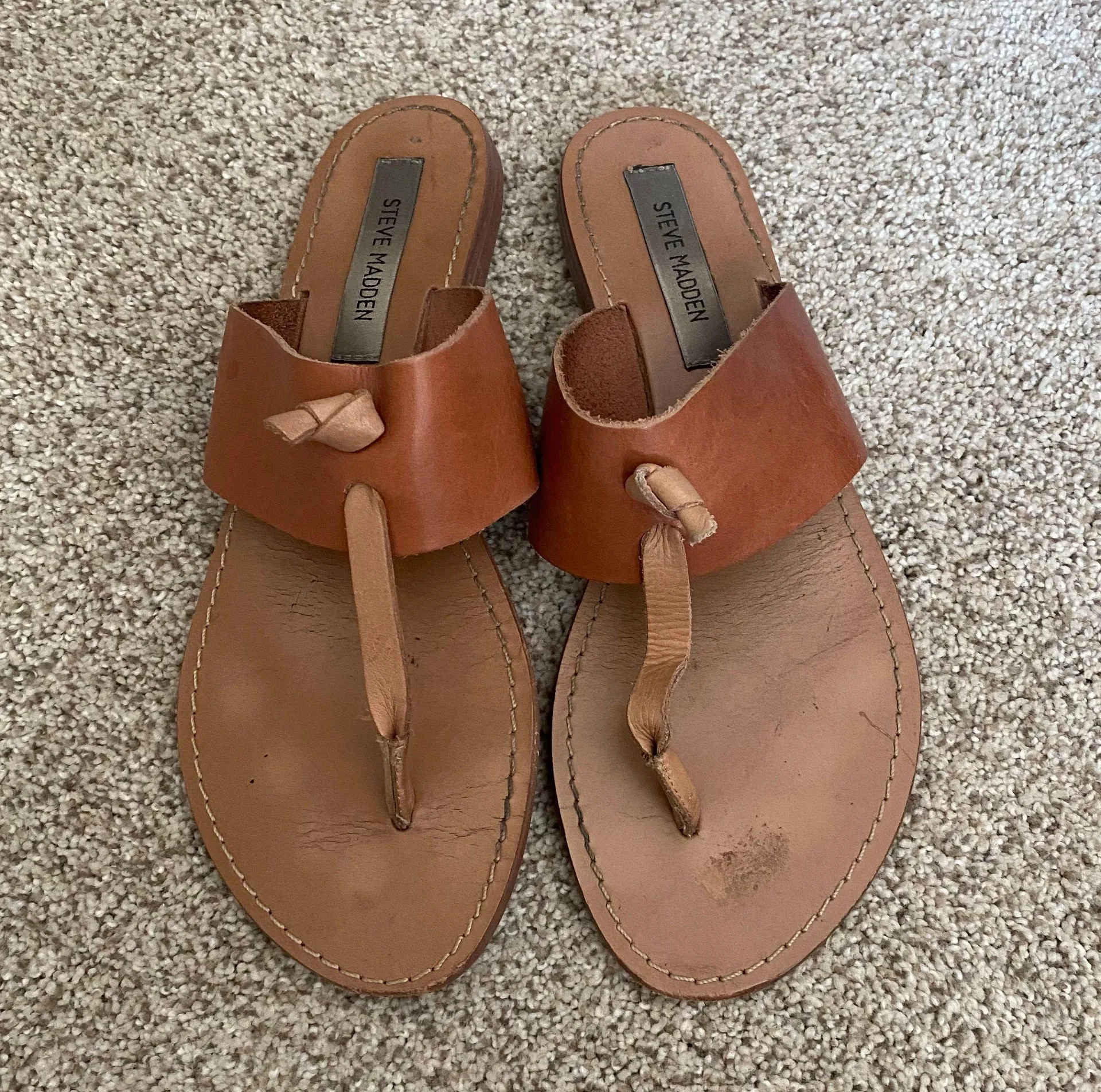 Steve Madden Sandals flip flops Size 8.5 - stamp worn off but I only by 8.5 in SM brown/tan Fair... Show more