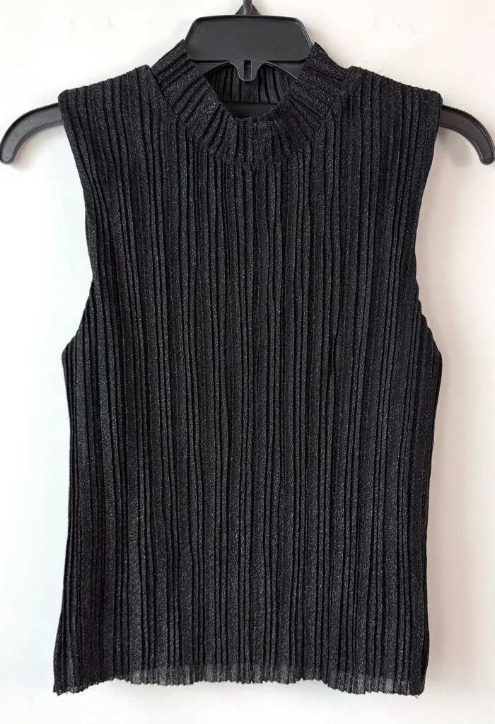 Steve‎ Madden Crinkle Metallic Mock Neck Tank Top Black S - $29 New With Tags - From Nordic