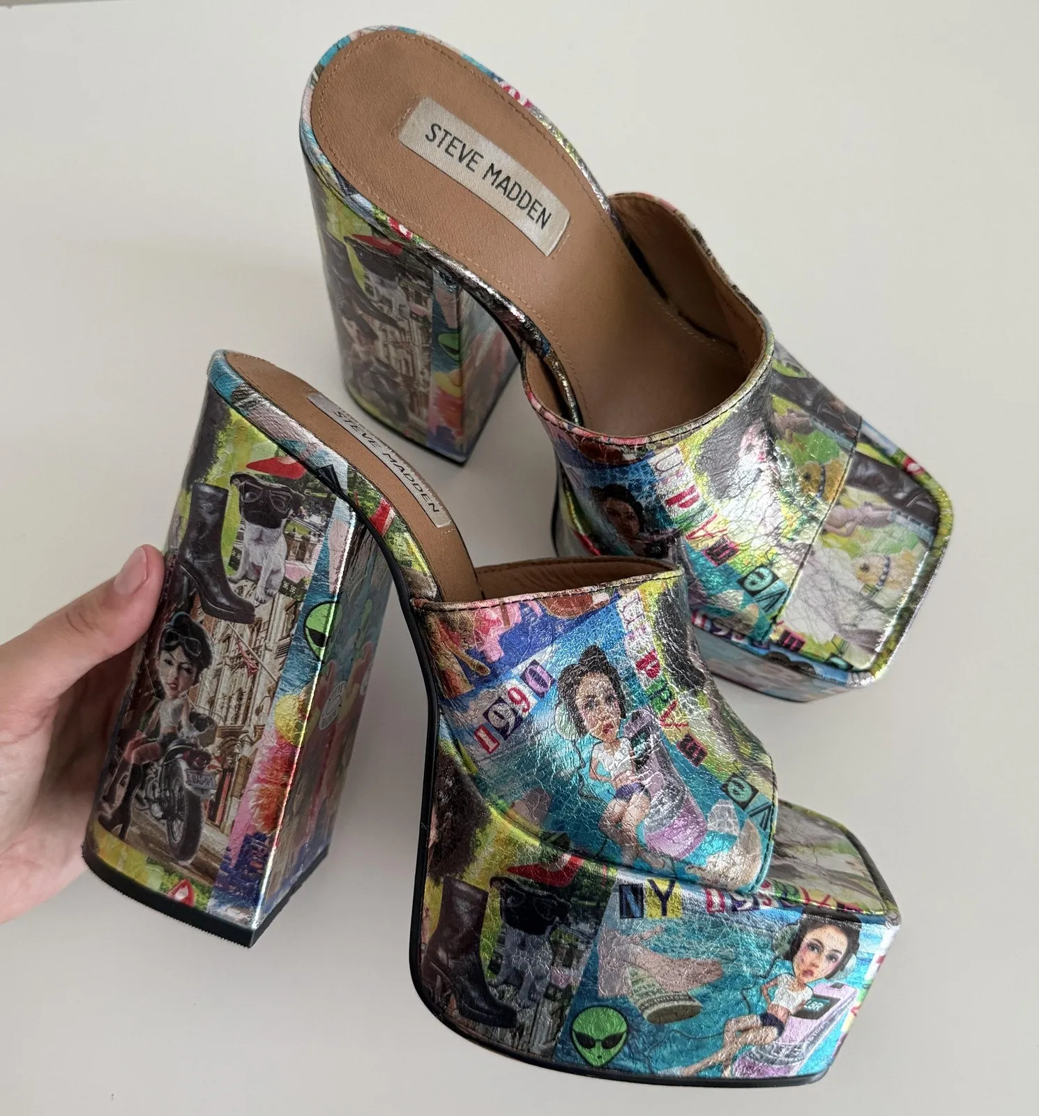 Brand: Steve Madden Item: Womens ultra-high platform mule heel shoes with open square toe and block... Show more