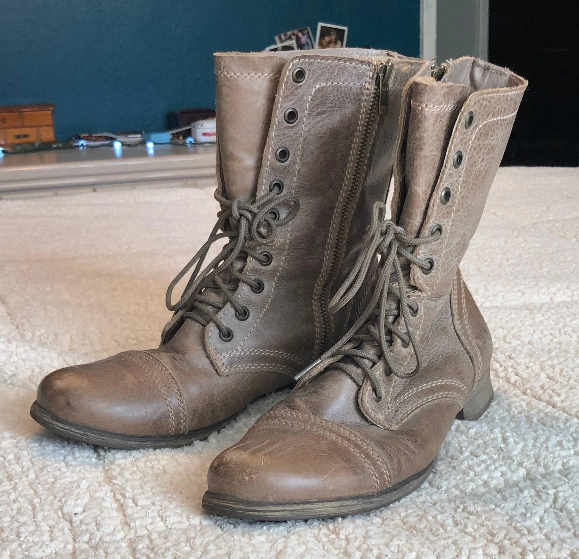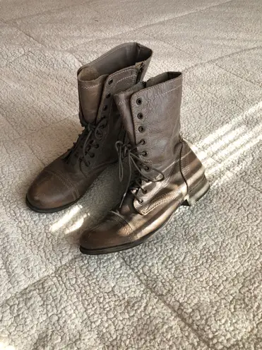 Steve Madden Troopa combat boots in taupe/stone. Great used condition, barely worn. There are a few... Show more