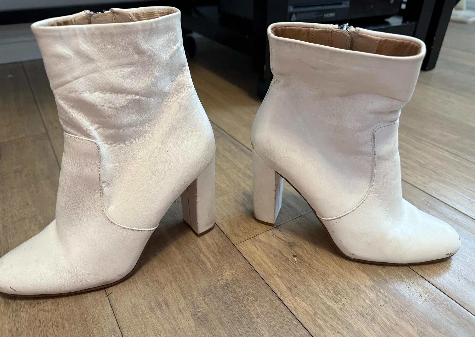 Steve Madden white ankle boot comfy and trendy for the fall!:) These have been used and love, I’m cl... Show more