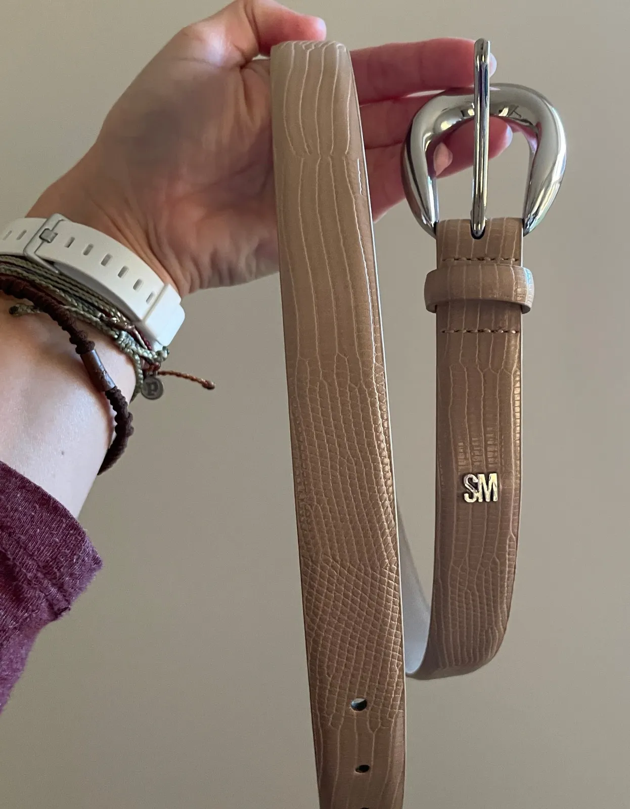 Steve Madden belt in a versatile camel hue featuring a chic lizard embossed texture. The polished si... Show more