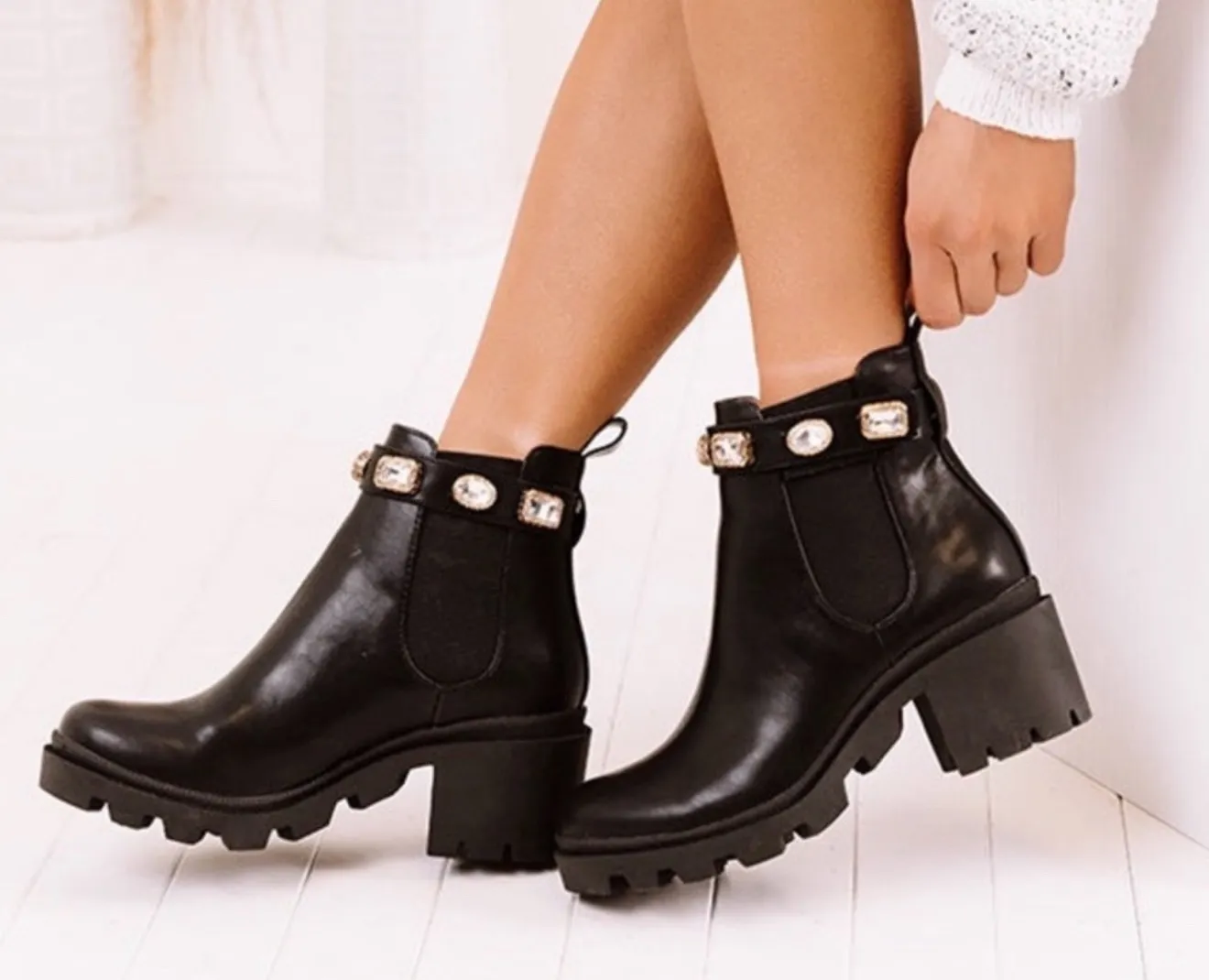 Steve Madden - Women's Amulet Stone Fashion Chelsea Platform Block Heel Boots Like new Size 8 Black... Show more