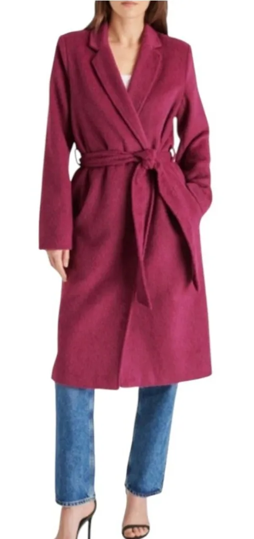 Steve Madden Womens Belted Long Coat Size XS Purple Textured Notch Collar NWT Condition: New with t... Show more