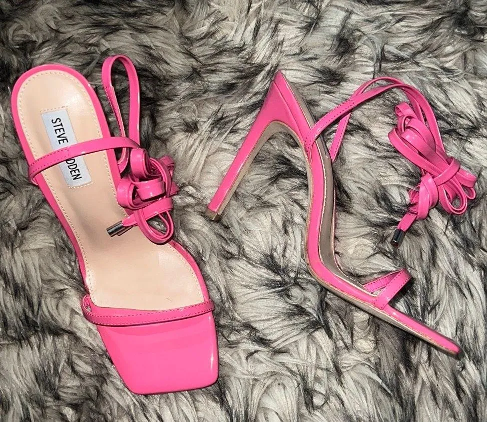 Steve Madden Women's Uplift PINK Heeled Sandal • • Pink heeled sandal with rubber sole. Square front... Show more