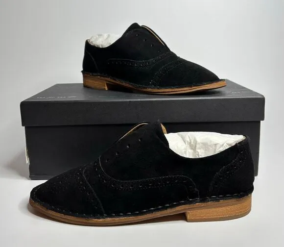 New in box Originally $120 Soft suede Steven oxfords balance rough-hewn welt construction with sophisticated brogue detailing. Inset elastic gores secure the faux lace-up closure. Stacked heel and rubber sole. US Women’s 5.5