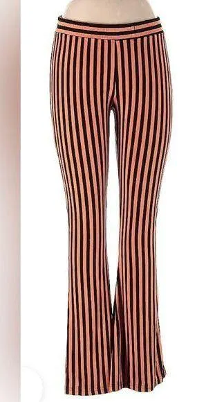 Kick flares Striped print Pastel orange peach tangerine citrus and black striped leggings pants Mid... Show more