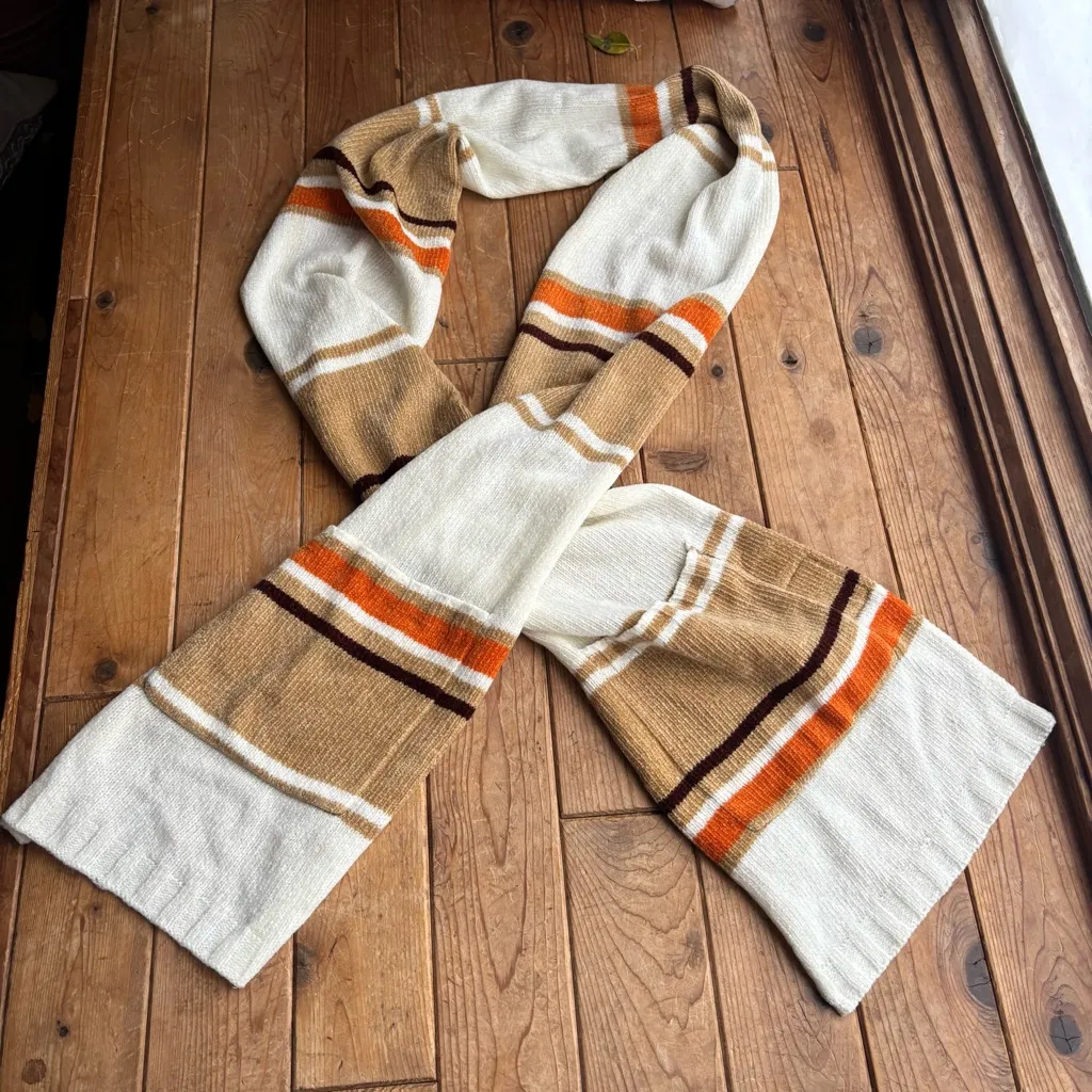 Stitches in Time Striped Knit Scarf in Cream and Orange - $18 - From Avarie