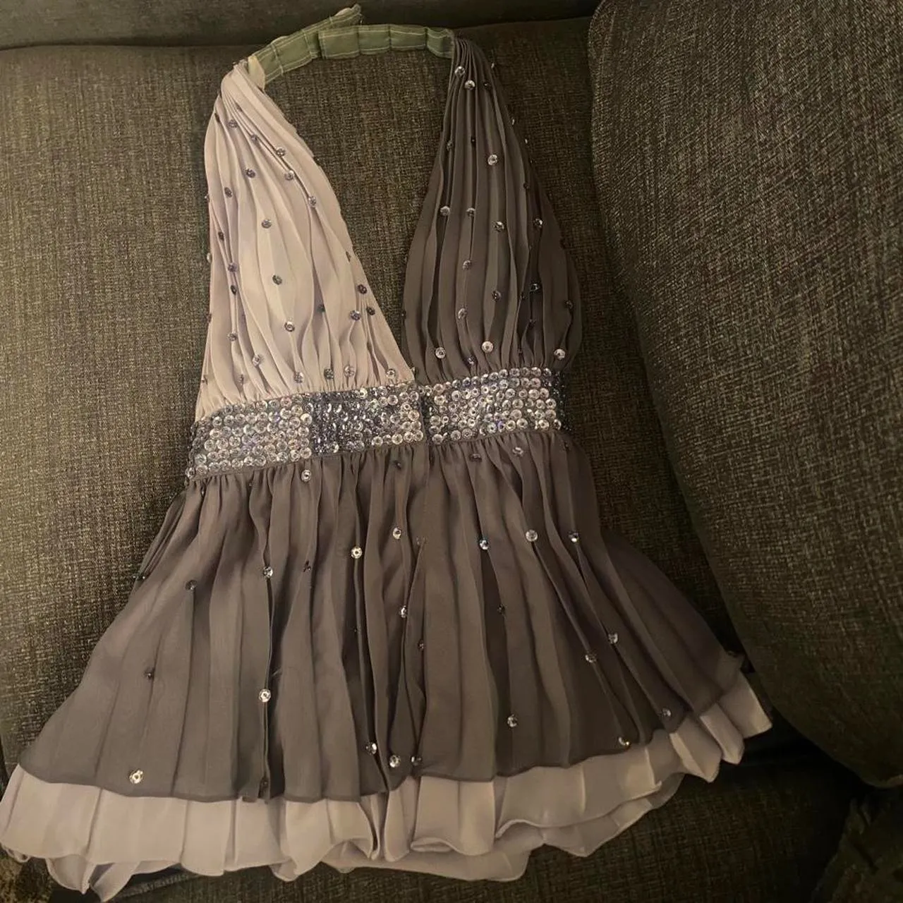 Size small Both of the colors on the dress are purple Includes clasps at chest Includes clasps around neck Includes grey velvet booty shorts Note; some of the sequins are a little loose, still in great condition. Dress opens below the chest Shorts are size medium Pit to pit- 12” Shorts waist- 10” Shorts length- 9” Length- 21” When purchasing a costume from me, you agree and understand that they are used and may not be in perfect condition. — however, I will try to capture all imperfection. Avail for shipping march 20
