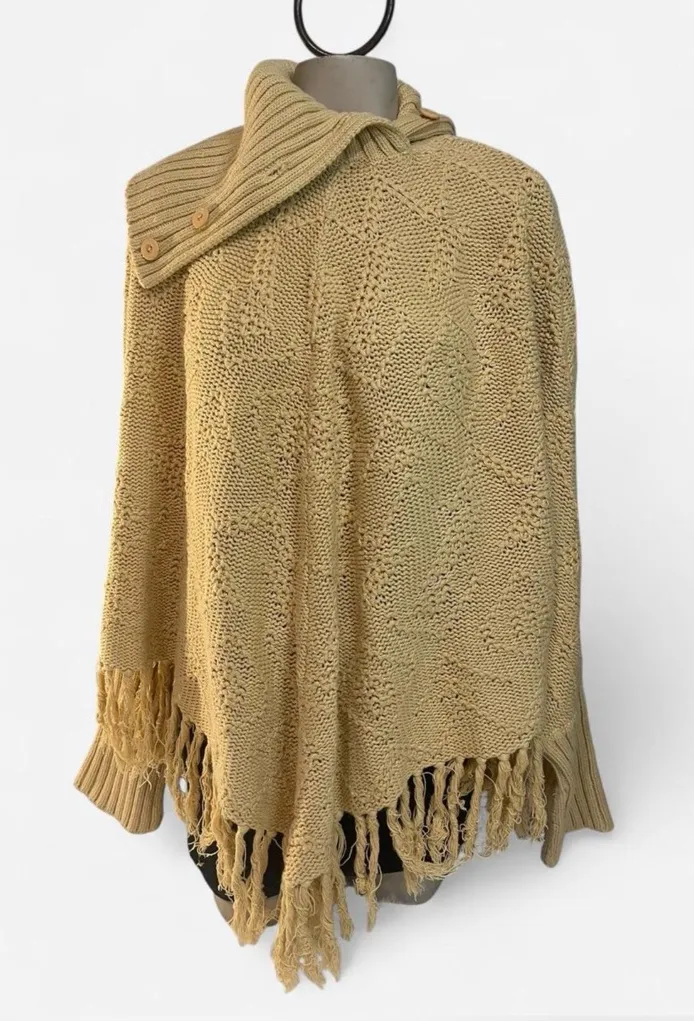 Storybook knits tan knit poncho shrug fringe hem boho hippie festival Large - $17 - From Renee