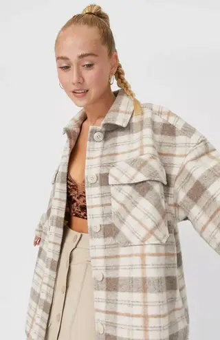 Stradivarius Brown Plaid Shacket - $28 - From emily