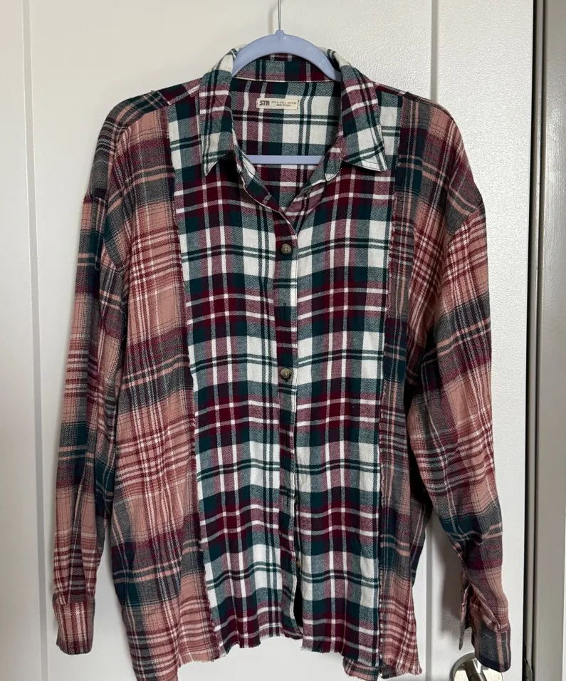 Stradivarius Multicolor Plaid Shirt Red Size L - $15 - From Mariia