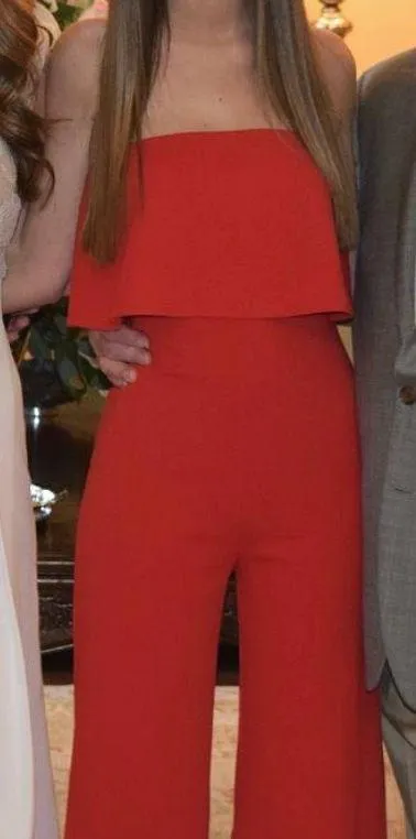 Red jumpsuit. Can be dressed up for black tie or down for cocktail. Worn once! ☺️