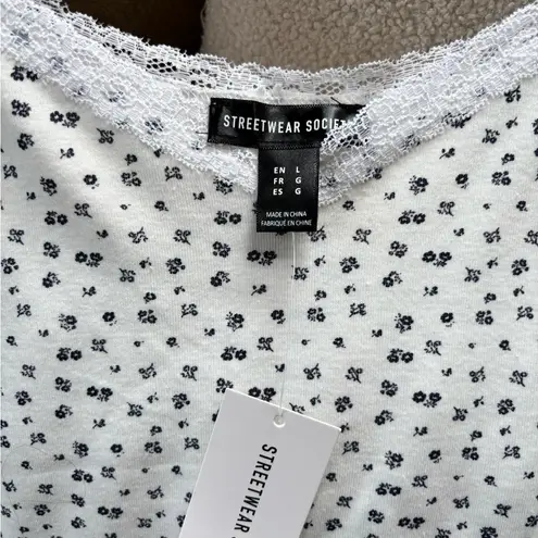 Streetwear Society Black and White Floral Lace Top Size L - $8 - From Adriana