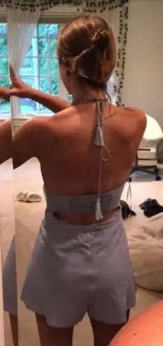 This is the prettiest romper ever. It is such good quality and is so comfy. It is way too small on me but I can tie it as tight as u want. There’s a little gap in the back which is super flattering as well!!
