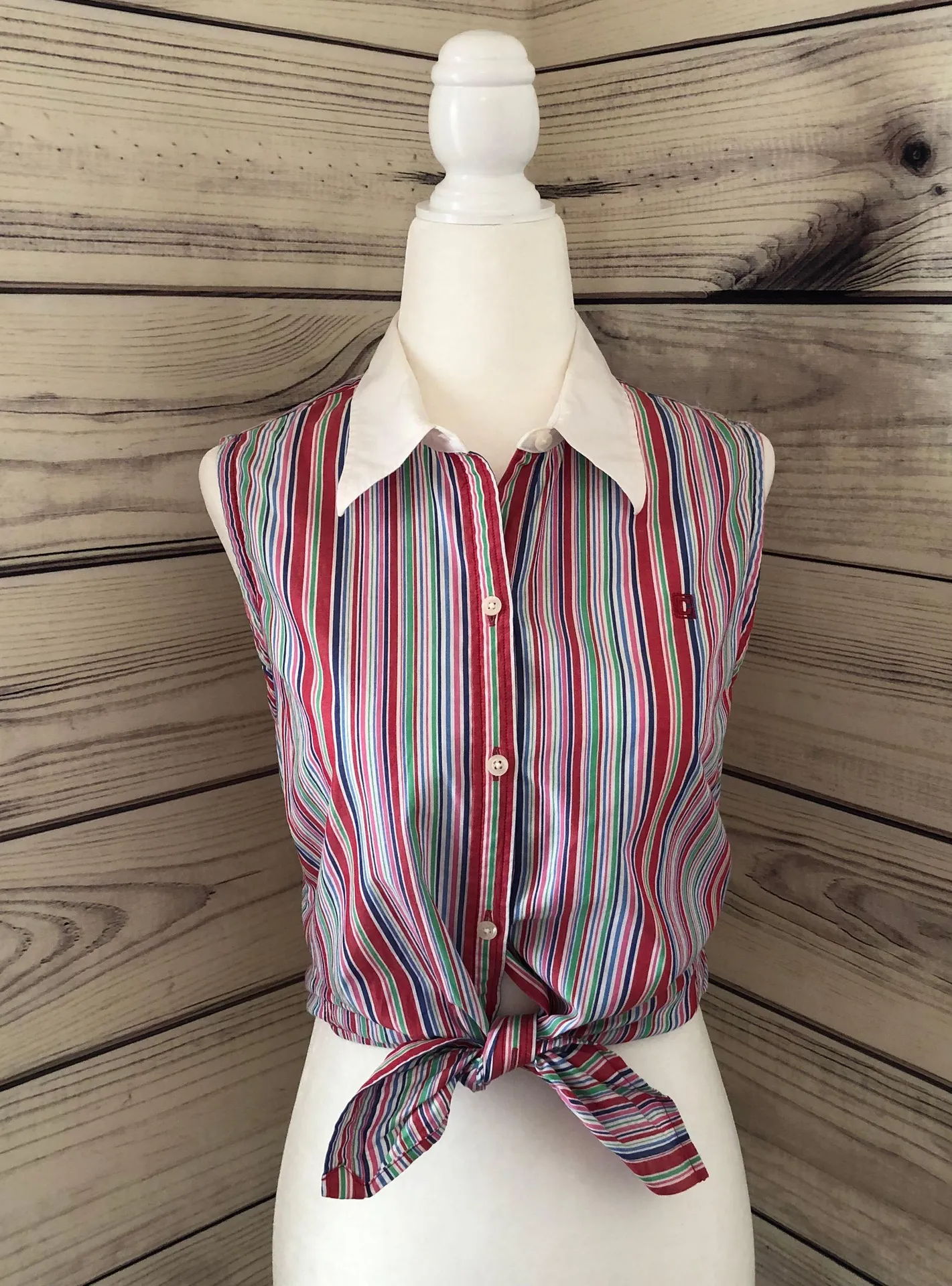 Striped Button Down Sleeveless Shirt Multi Size M - $22 - From Kelsey