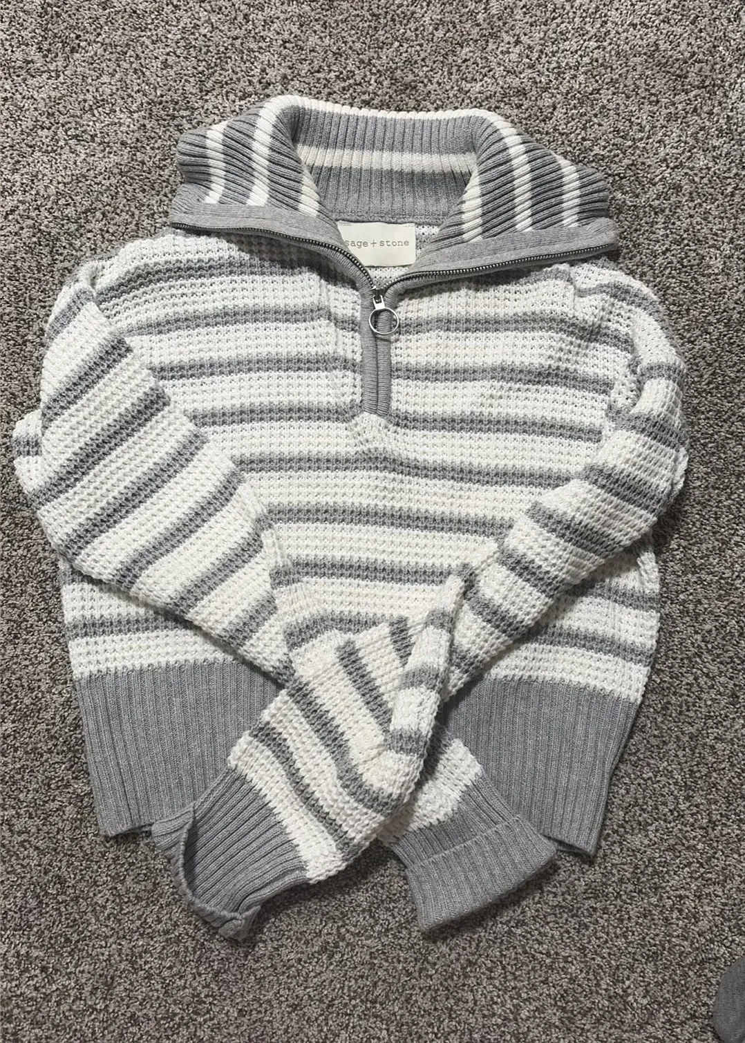 Striped quarter Zip Sweater Gray - $9 (55% Off Retail) - From lexi